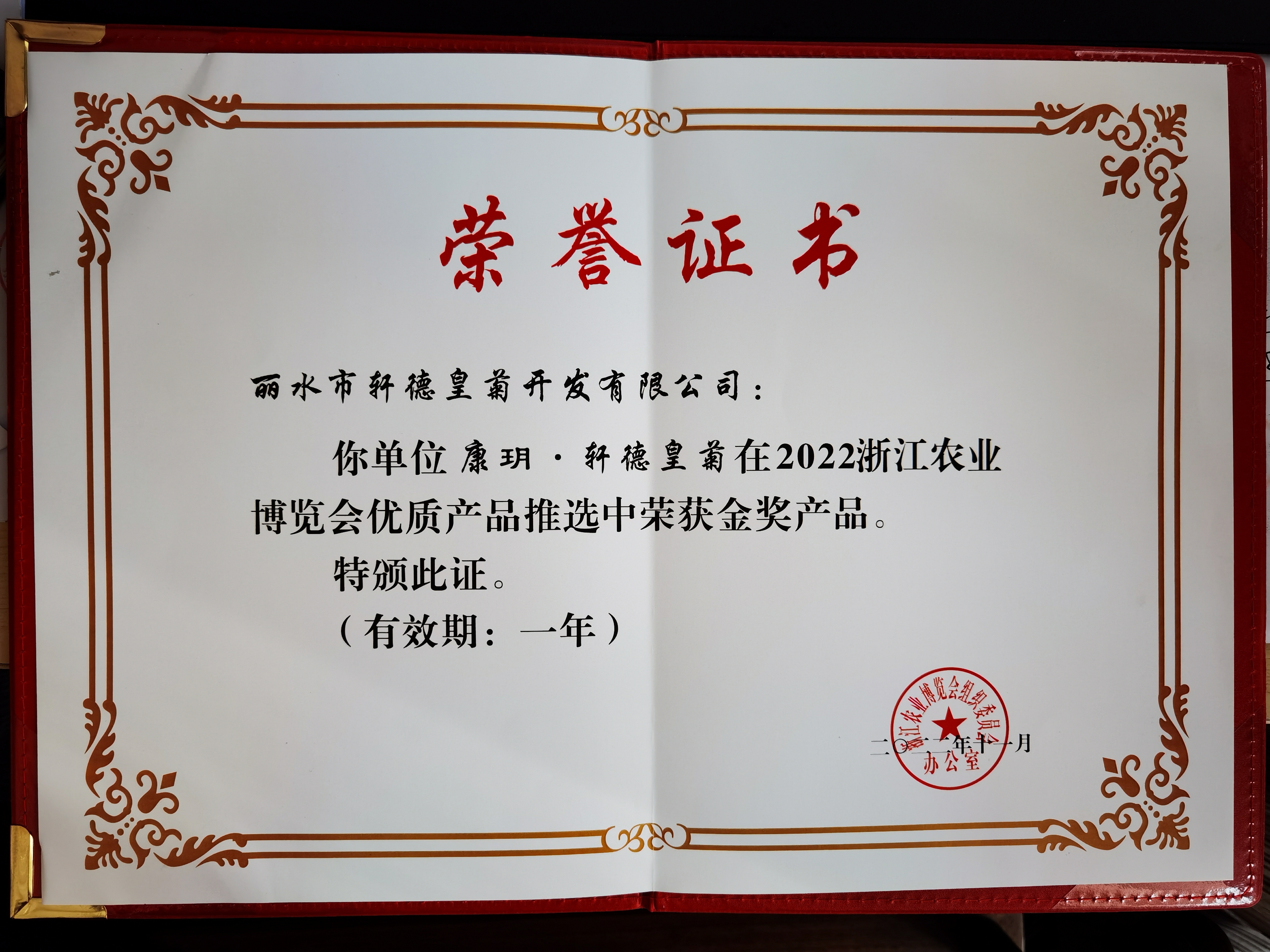 熱烈祝賀軒德皇菊獲評(píng)“2022浙江農(nóng)博會(huì)金獎(jiǎng)產(chǎn)品”