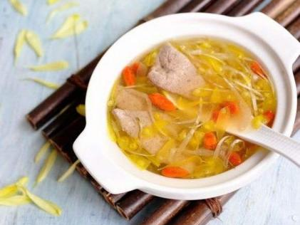 材料:枸杞子15g,皇菊60g,鮮豬肝300g,精鹽、味精少許。